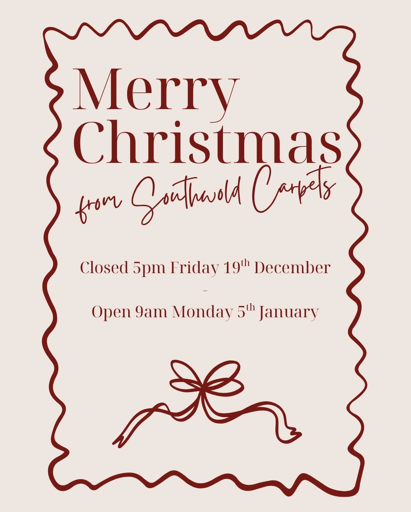 From all of us here at Southwold Carpets, we wish you all a very Merry Christmas & Best Wishes for 2026. We look forward to seeing you all again in the New Year!